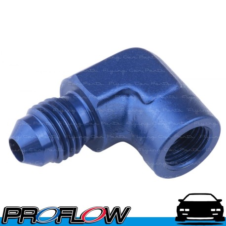 Female 90 Degree Adaptor Fitting 1/8" NPT To Male AN -3 (AN3) Blue