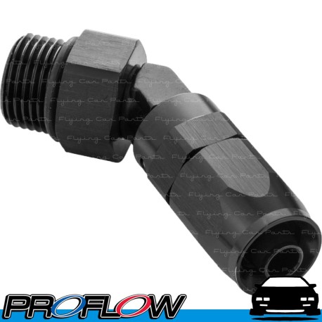 PROFLOW AN -10 (AN10) Hose End to AN -12 (AN12) Male ORB Swivel Black 45 Degree Fitting