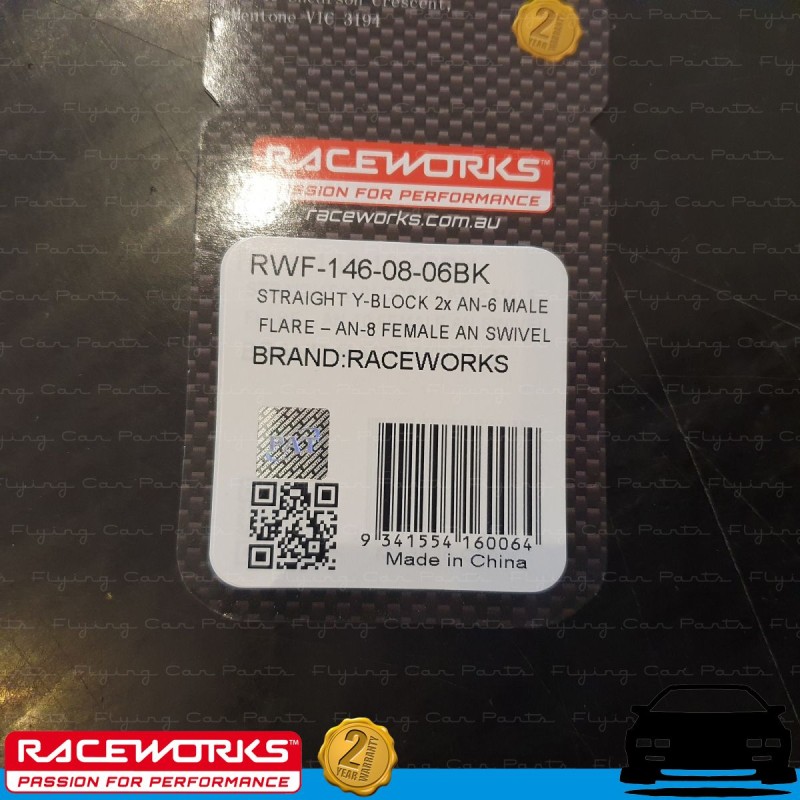 RACEWORKS Straight Y-Block 2 x AN6 6AN Male to Flare AN8 8AN Female AN Swivel